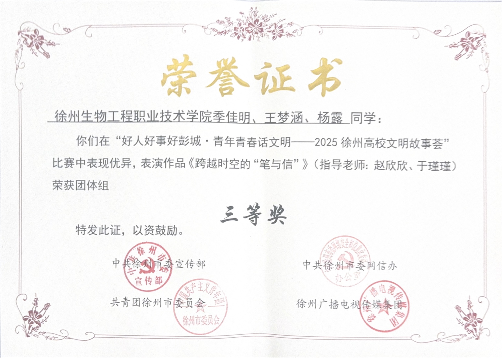 我校学子在徐州市“文明故事荟”活动中喜获佳绩